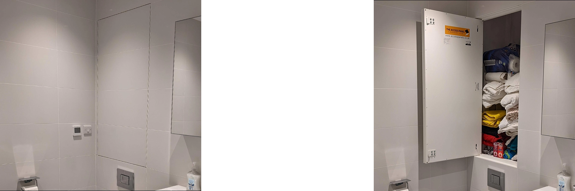 The Tile Door provides a high quality opening for access to building services in ceramic tiled walls. Each panel is made to suit the individual tile and combination of tiles being used. This ensures no unsightly tile cuts or visible frames disrupting the overall tiled finish.