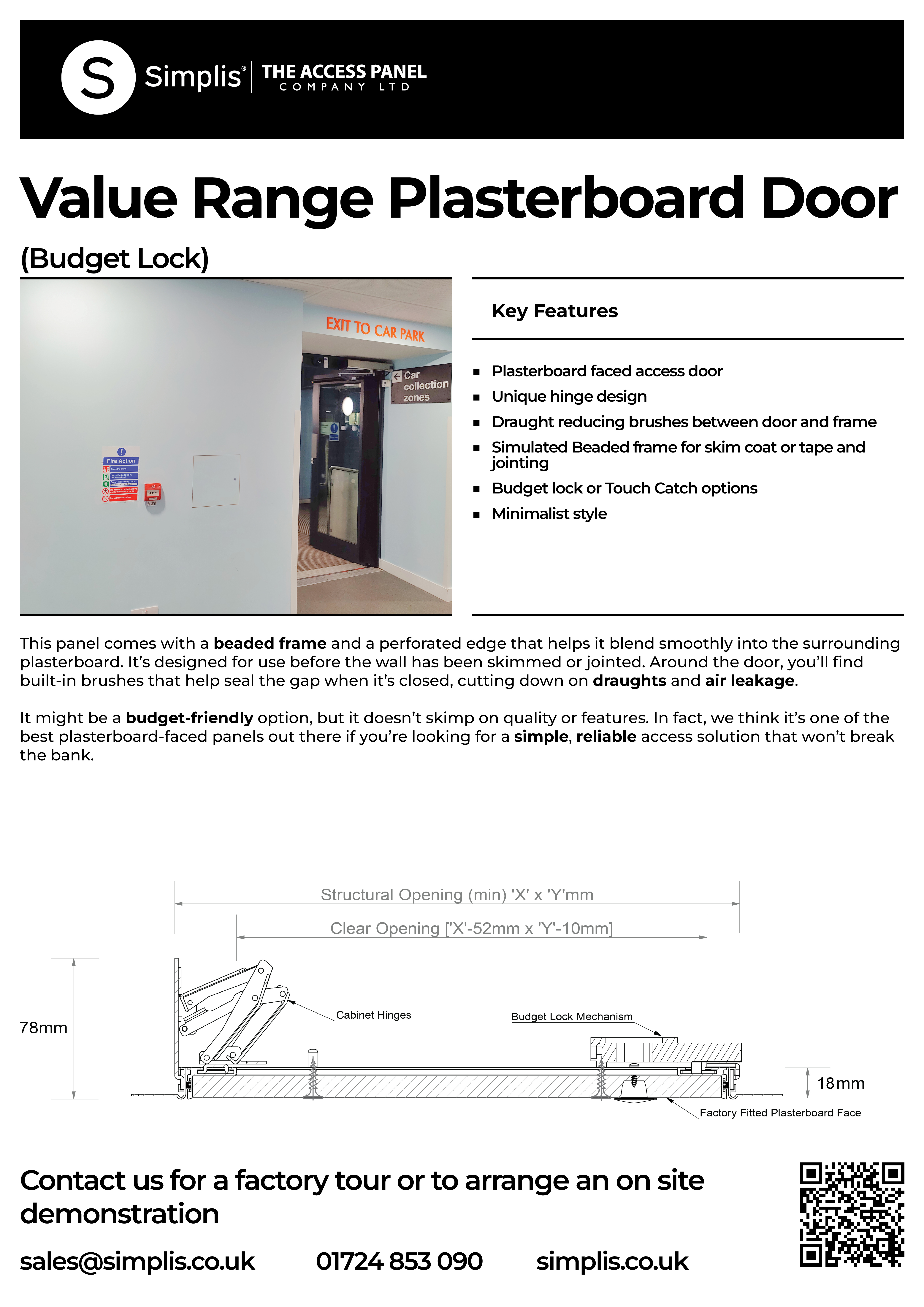 Value Range Plasterboard Access Panels provide very low cost plasterboard faced protected openings in ceilings and walls for access to building engineering services where space is at a premium.